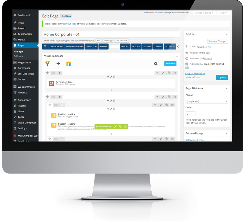 Page Builder: Visual Composer is the must-have-plugin with WordPress site powered. It is the first choice for a web developer to build and manage the content of the website. Just by some click, you can create a pro looking predefined layouts. Drag and drop page builder function helps you to create stunning pages quickly and easily.
